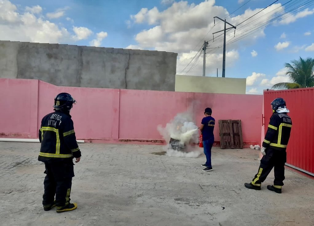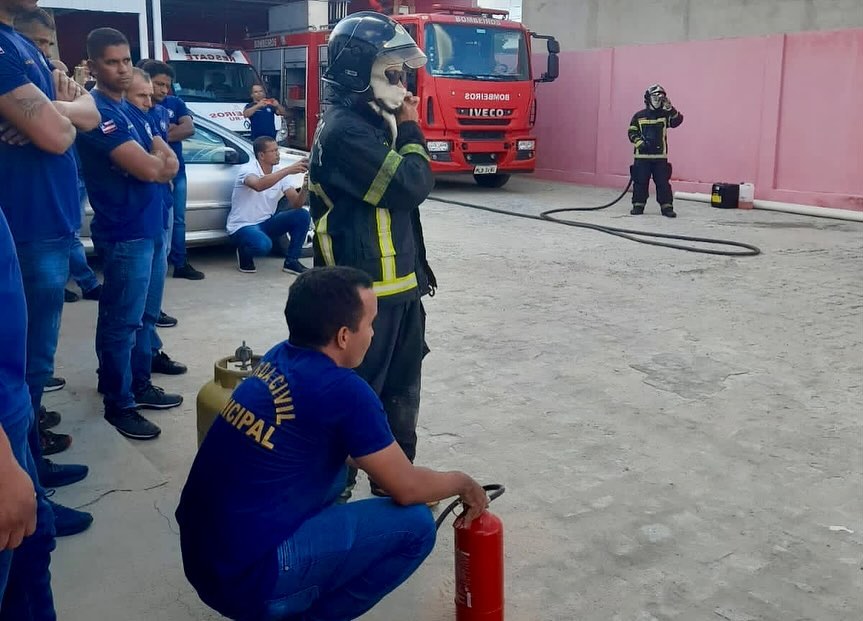 Neste primeiro dia de capacitação, os alunos passaram por instruções de nações de combate a princípios de incêndio, tendo o Soldado BM Aristóteles como instrutor.