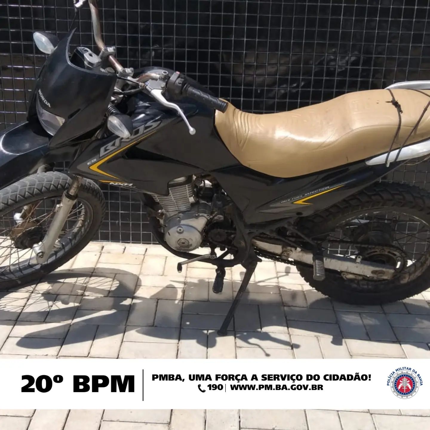 Por volta das 10h, durante o motopatrulhamento pelo centro de Jeremoabo, a equipe recebeu informações sobre o suspeito do furto da moto KMA 7444, uma CG 150 preta, em Malhada Nova, no Município de Pedro Alexandre, no dia 25/02/2024. Rondas foram imediatamente iniciadas, culminando na localização do suspeito nas ruas da cidade. O conduzido estava em posse de uma motocicleta Honda Bros 150 preta, com chassi parcialmente suprimido e numeração do motor totalmente adulterada, resultando em sua prisão e condução à autoridade policial para as devidas providências legais.