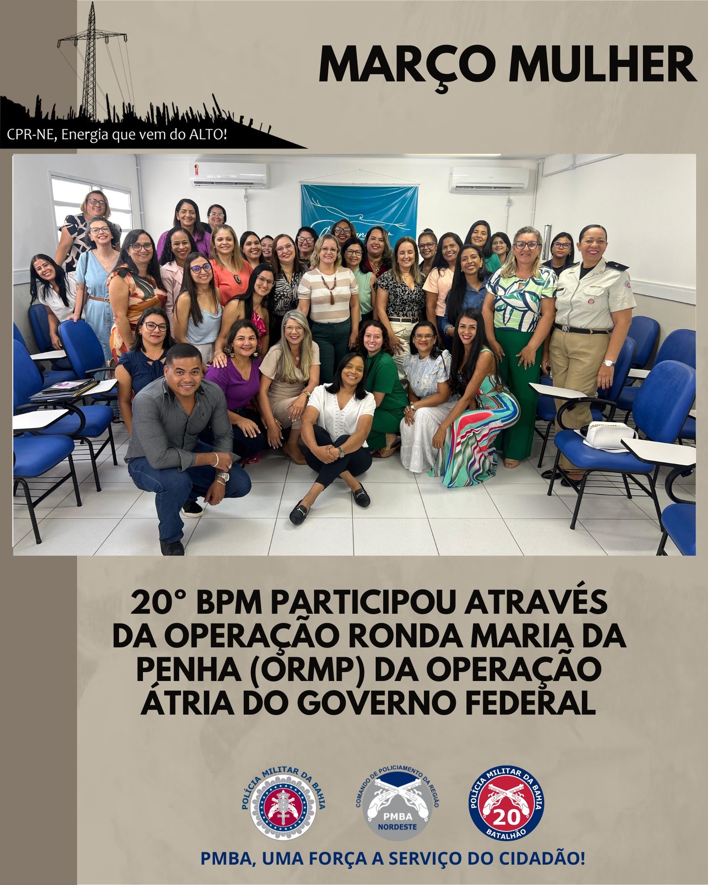 Neste sábado (16), o 20º BPM, através da Operação Ronda Maria da Penha, em conjunto com a Delegacia Especial de Atenção à Mulher, participou da Operação Átria do Governo Federal, coordenada pelo Ministério da Justiça e Segurança Pública (MJSP), por meio da Secretaria Nacional de Segurança Pública (Senasp).