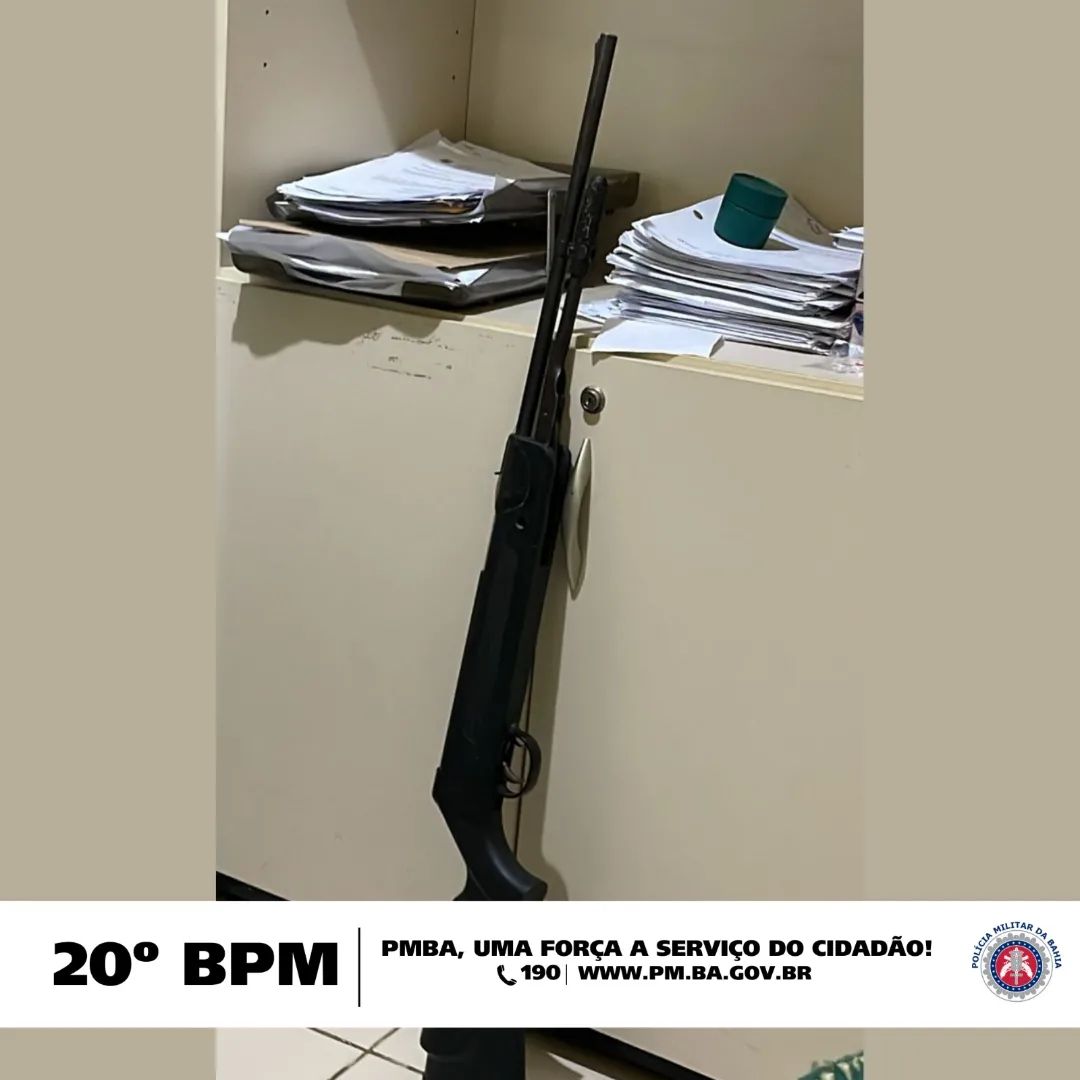 Na data de segunda-feira, 26 do corrente mês, a guarnição realizava rondas ostensivas no munícipio de Rodelas-BA. Durante o percurso, os agentes decidiram proceder com a abordagem de um indivíduo, visto que no interior de seu veículo havia um objeto alongado, acondicionado em uma sacola, ensejando, assim, a realização de uma busca pessoal, na qual foi constatado tratar-se de uma arma de fogo de cano longo, especificamente uma espingarda calibre 22.