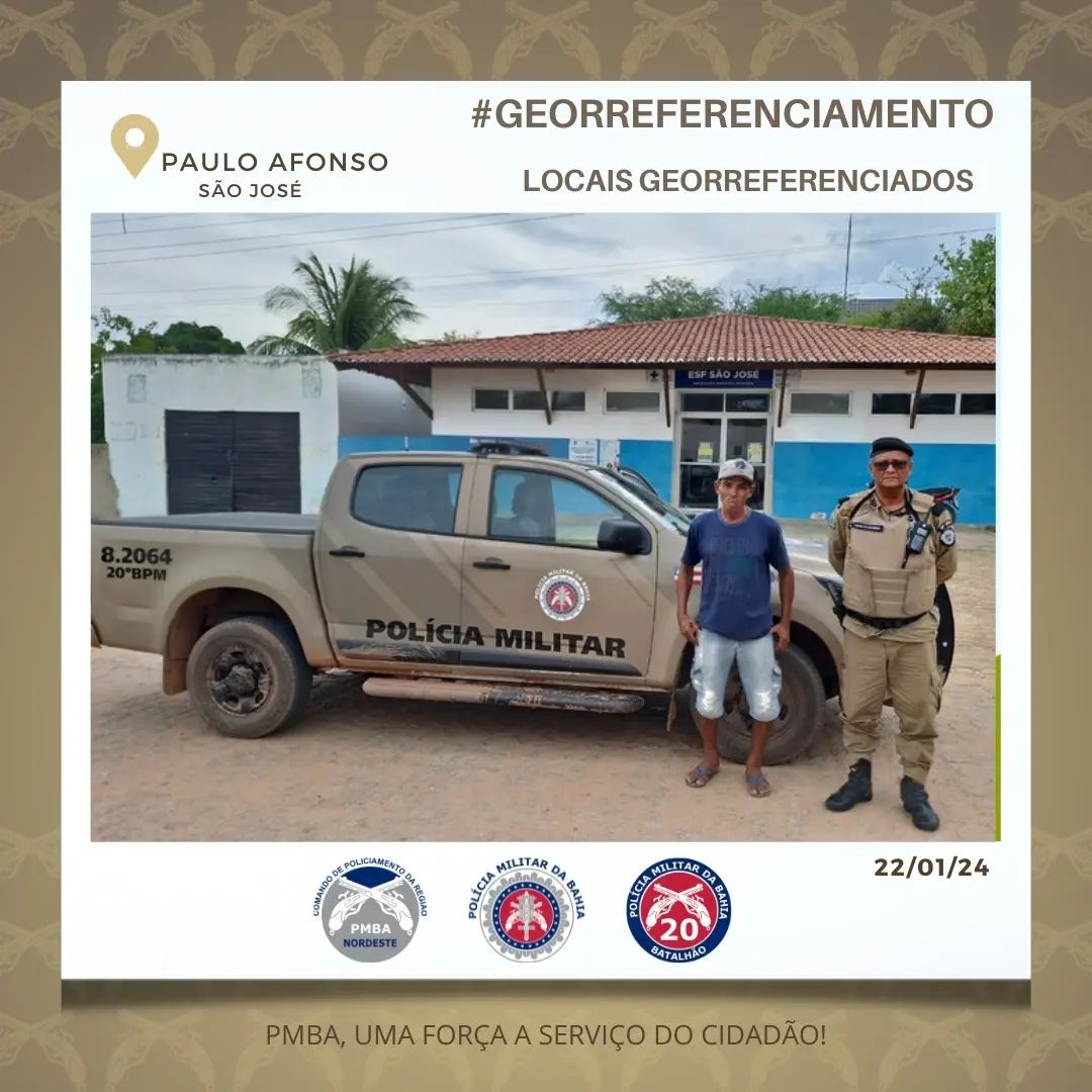 A Polícia Militar da Bahia (PMBA), através do 20º BPM, comandado pelo Ten Cel PM Sena, subordinada ao Comando de Policiamento da Região Nordeste (CPR-NE), comandado pelo Coronel PM César Albuquerque, realizou nesta segunda-feira (22), a 3ª etapa de cadastramento para Policiamento Comunitário Georreferenciado, atendendo a zona rural da área de responsabilidade do 20º BPM