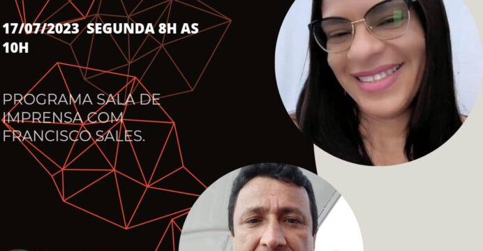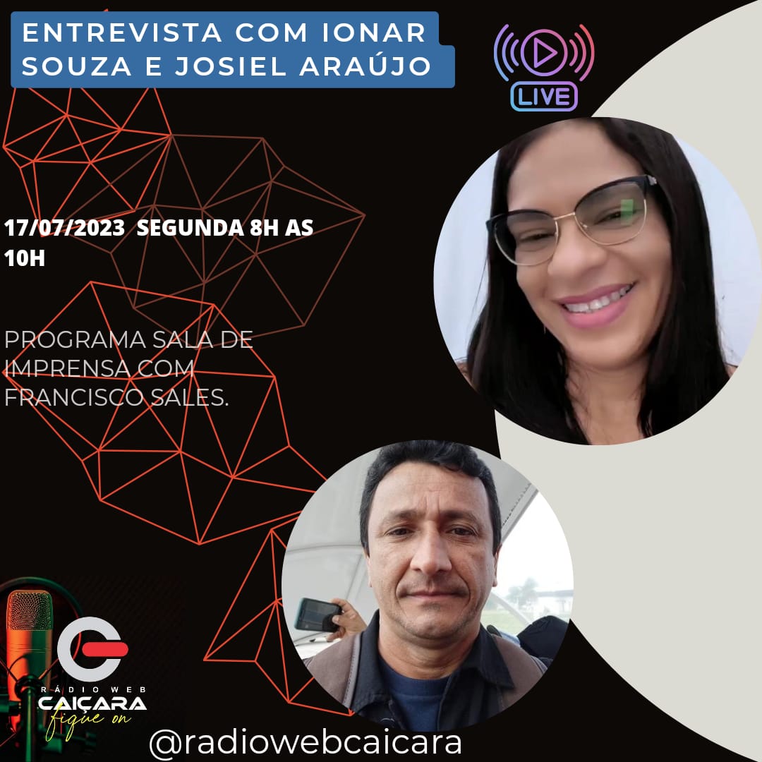Nesta segunda-feira 17 de julho de 2023 o Programa Sala de Imprensa da Rádio Web Caiçara vai receber em seu estúdio, os Delegados da 17° Conferência Nacional de Saúde, Josiel Araújo da cidade de Glória e Ionar Souza da cidade de Paulo Afonso, ambos da Bahia.