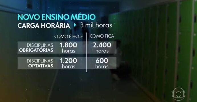 A carga horária nos três anos permanece como é hoje: 3 mil horas. O que muda é a divisão entre as disciplinas obrigatórias e as optativas, de aprofundamento de conhecimento em áreas específicas.
