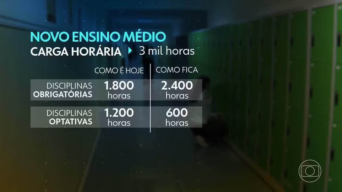 No ensino técnico profissional, a carga total de 3 mil horas também fica igual. As matérias obrigatórias subiram de 1,8 mil para 2,1 mil horas, com até 300 horas aproveitadas dentro da formação.