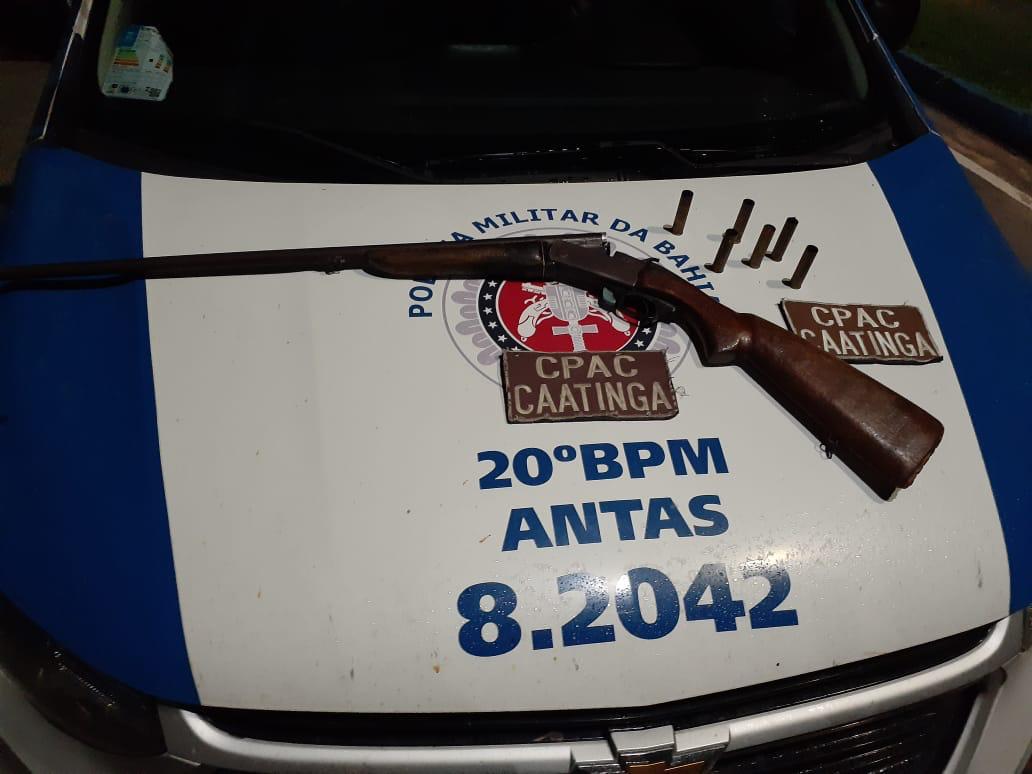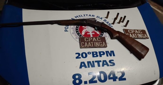 Em 12 de maio de 2020 por volta das 20h30min, a guarnição da 3ª Cia/PM recebeu um informe de que um indivíduo que havia evadido de uma operação policial realizada na cidade de Sítio do Quinto-BA, nesta manhã, à qual culminou na apreensão de vasto material entorpecente, estaria homiziado em uma chácara localizada a aproximadamente 3 km de Antas. De imediato, os policiais solicitaram apoio da guarnição da CPAC, e deslocaram ao referido local. Foi realizada incursão ao interior da chácara e localizada 01 (uma) espingarda calibre 28, com 6 (seis) cartuchos.