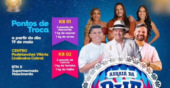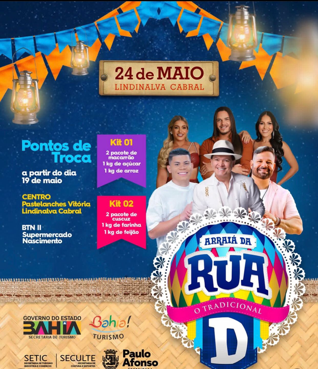 Prepare o coração, a roupa xadrez e os mantimentos, que o Arraiá da Rua D tá chegando com tudo! No dia 24 de maio, a tradição vai tomar conta do Lindinalva Cabral com muita música, comida típica, alegria e solidariedade! Troque seu kit e venha curtir esse forrozão com a gente!