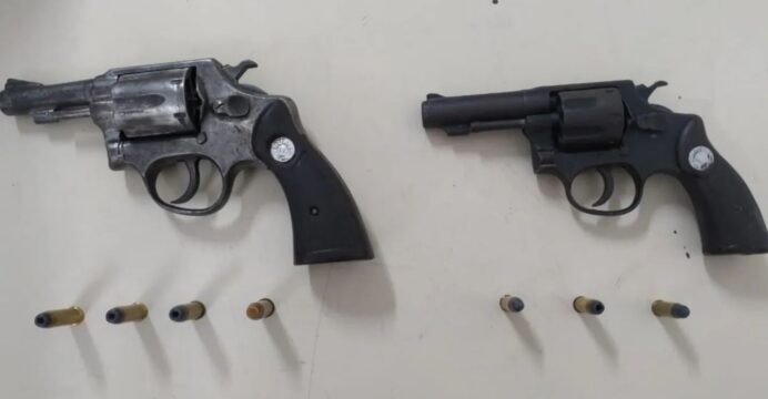 Por volta das 10h59min da manhã de hoje (24), a guarnição do motopatrulhamento estava intensificando rondas no Bairro Prainha, e ao realizar o patrulhamento na rua Beira Rio, avistou um indivíduo numa bicicleta com um volume na cintura, foi realizado abordagem e em sua cintura foram encontrados dois revólveres marca Taurus um (01) calibre .38 e o outro de calibre .32, ambos municiados.