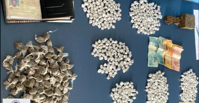 Durante as buscas, foram encontradas várias sacolas plásticas contendo trouxinhas de maconha, alguns tabletes de maconha e uma quantia em dinheiro. Diante dos fatos, o suspeito e o material foram levados à delegacia.