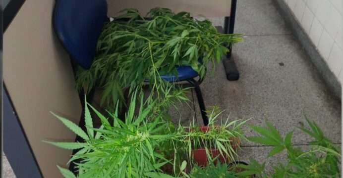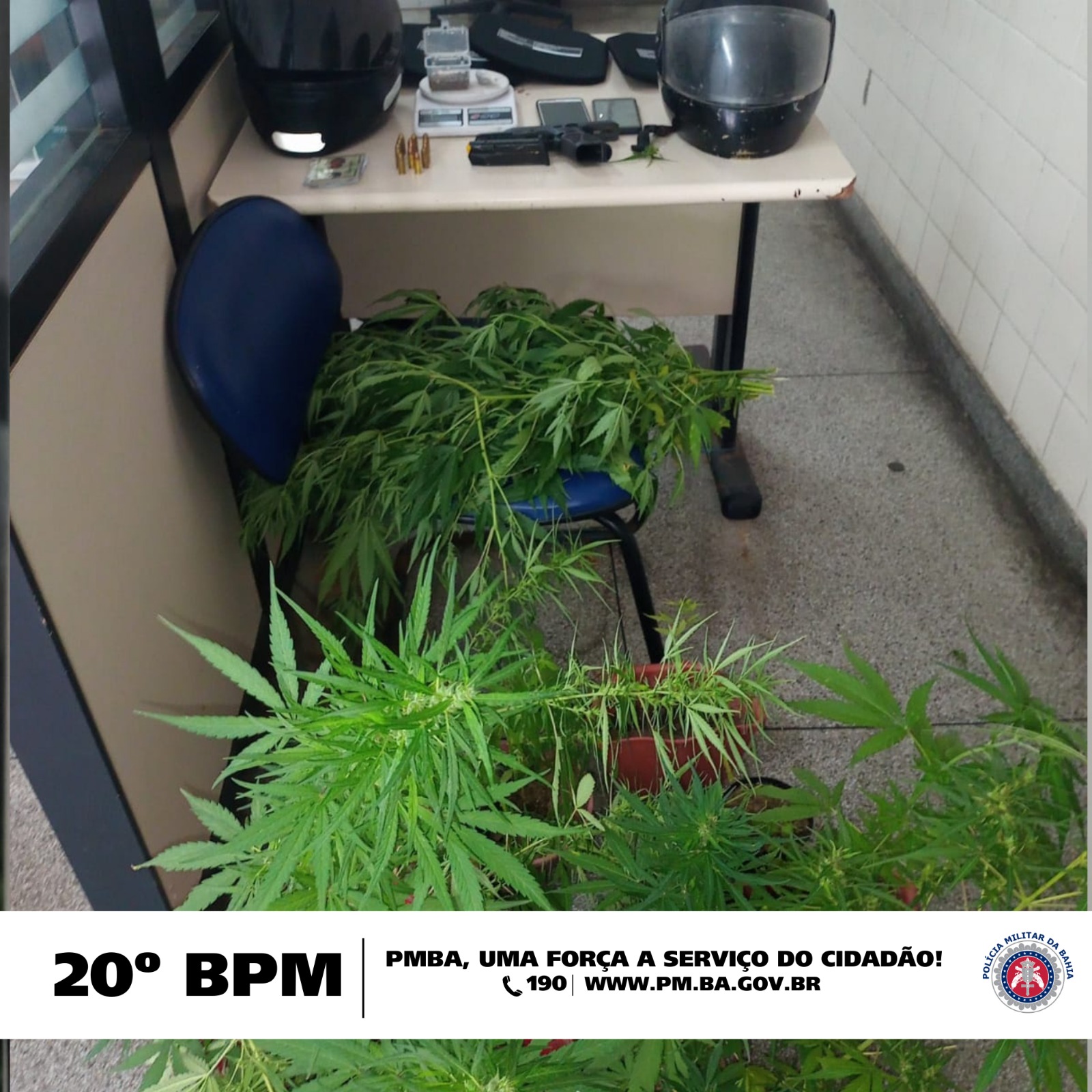 16 pés de maconha, uma balança digital, uma balinha de maconha, um recipiente com sementes de maconha e dois celulares.