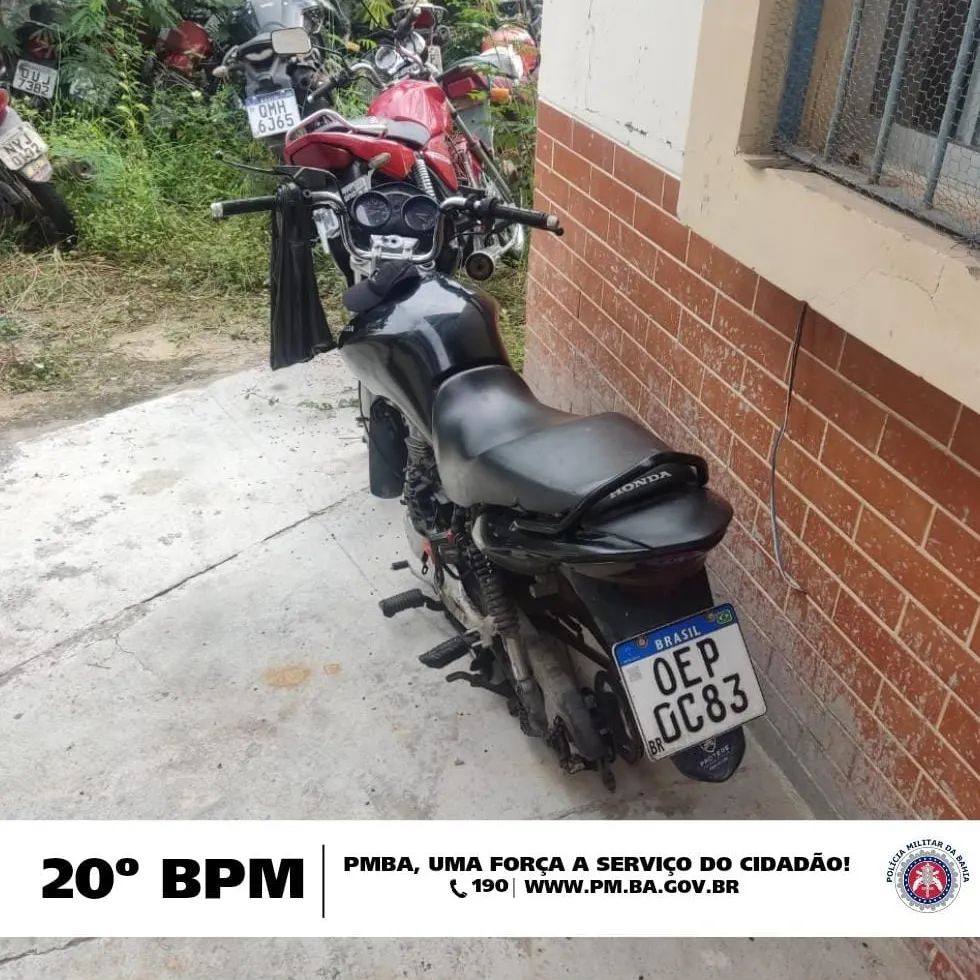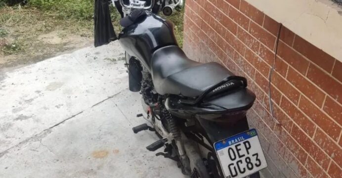 A guarnição, ao chegar no local, consultou a situação do veículo, constatando que a motocicleta estava com restrição de roubo. Diante da situação, a motocicleta foi removida para Delegacia com objetivo de prosseguir com as medidas cabíveis.