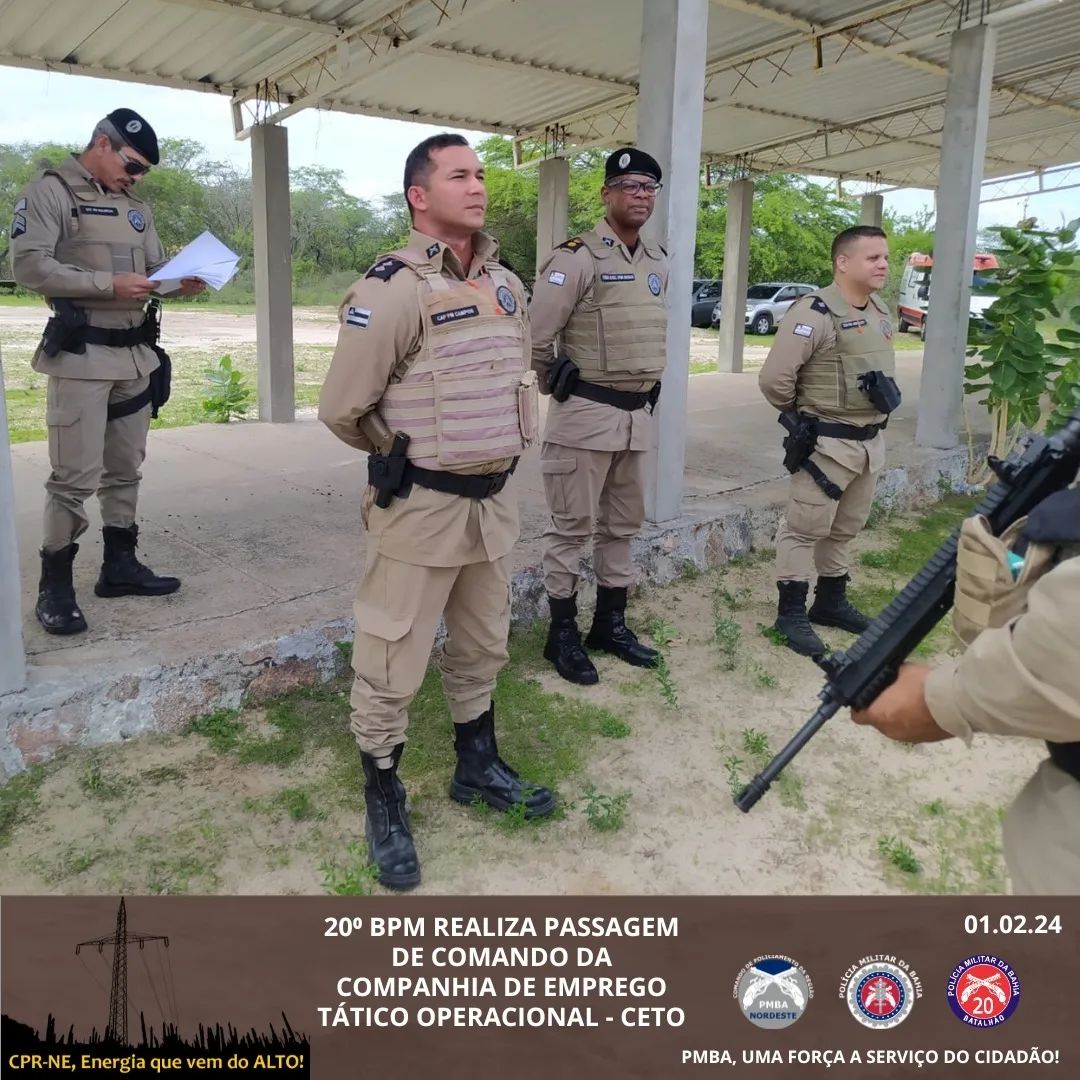 Na tarde de hoje, 01 de fevereiro (quinta-feira), O 20º BPM comandado pelo Ten Cel Sena, subordinado ao Comando de Policiamento da Região Nordeste (CPR-NE) realizou a solenidade de passagem de comando da Companhia de Emprego Tático Operacional – CETO.