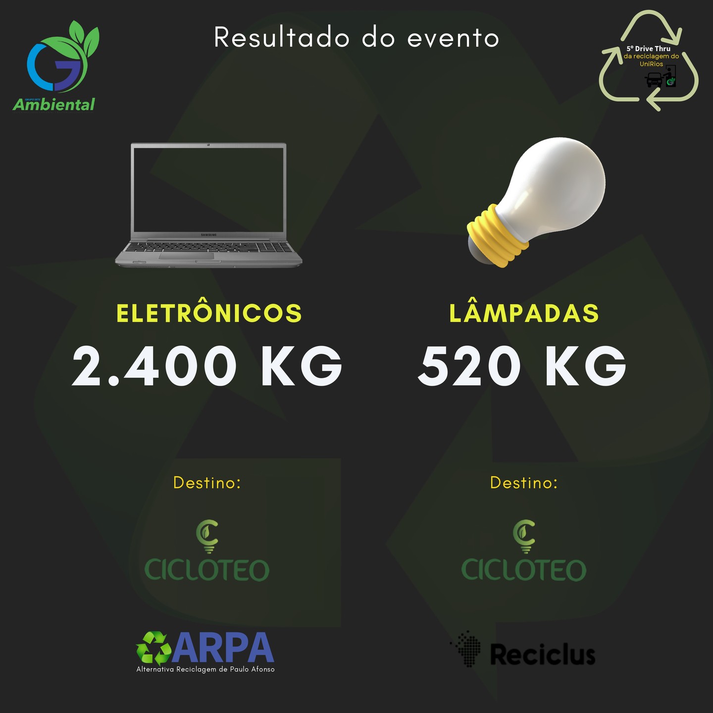 Gratidão aos parceiros pelo apoio na realização do evento, à população e aos empresários que descartaram corretamente seus resíduos.