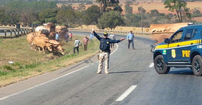 Na quinta-feira (31), a Polícia Rodoviária Federal deparou-se com um animal bovino solto no Km 2 da BR 110, em Paulo Afonso (BA). O animal estava gerando perigo aos veículos e transeuntes que circulavam pelo local.