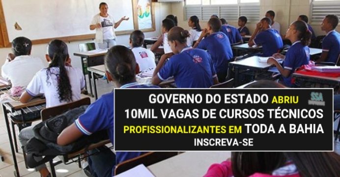 A Secretaria da Educação do Estado abriu, nesta quarta-feira (16), as inscrições do processo seletivo para 10 mil vagas de cursos técnicos para quem já concluiu o Ensino Médio. As vagas são para os Centros Estaduais e Centros Territoriais de Educação Profissional, além de unidades compartilhadas, na capital e em mais 82 municípios da Bahia. Só na capital baiana são 2,7 mil vagas. As inscrições deverão ser feitas até o dia 21 de janeiro, exclusivamente, pelo Portal da Educação.