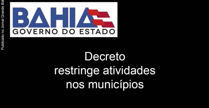 Decreto do Governo da Bahia restringe atividades nos municípios.