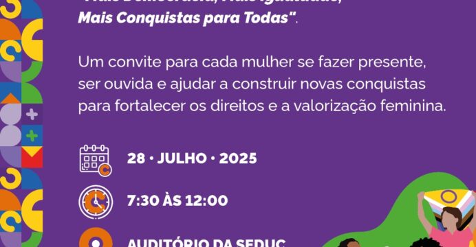 Com o tema “Mais Democracia, Mais Igualdade, Mais Conquistas para Todas”, o evento tem como objetivo promover um espaço de escuta ativa, diálogo construtivo e formulação de propostas voltadas à garantia de direitos e ao protagonismo das mulheres glorienes.