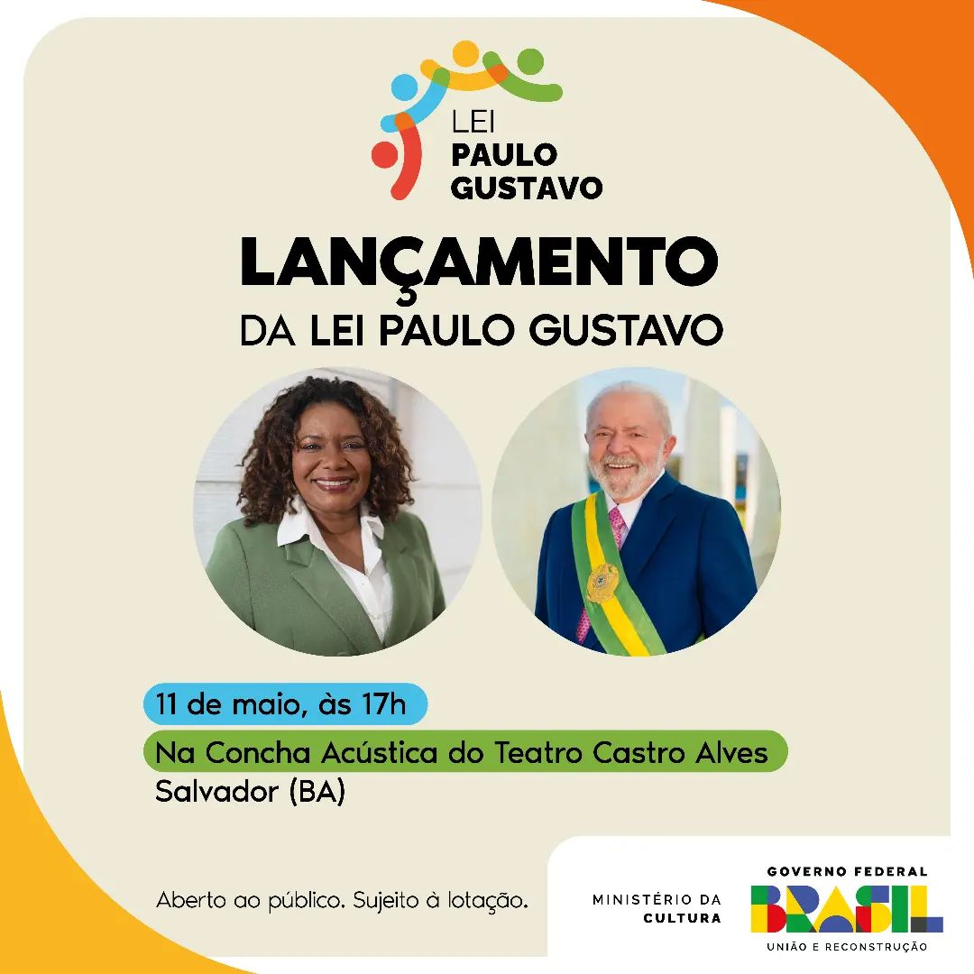 Com a presença do Presidente Lula e da ministra Margareth Menezes, o lançamento da Lei Paulo Gustavo já tem local, data e hora definidos!
