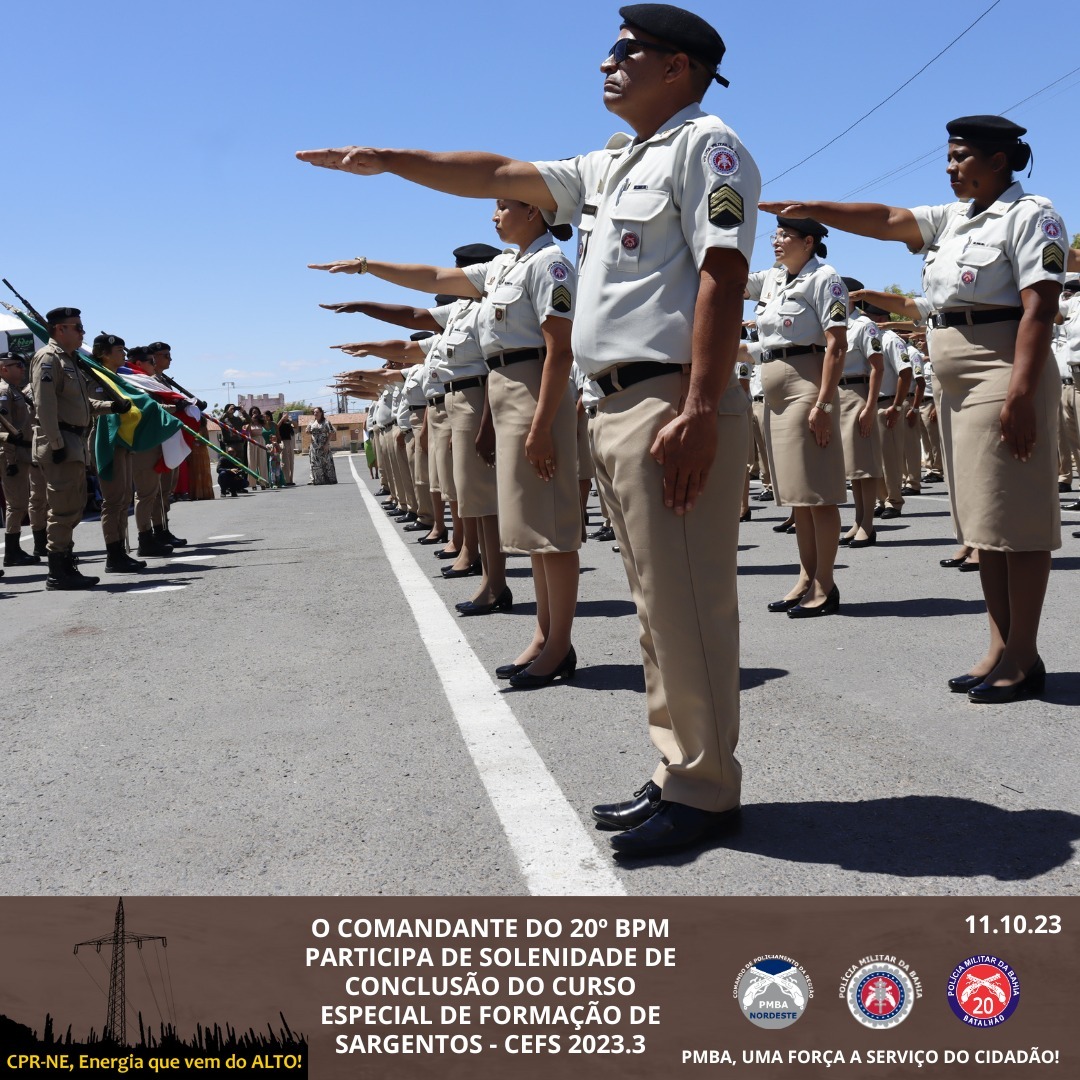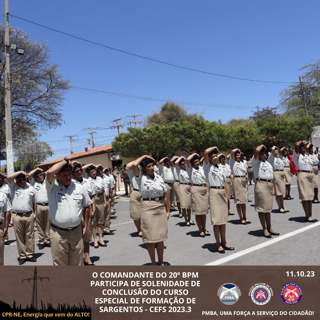 BAHIA: O COMANDANTE DO 20º BPM PARTICIPA DE SOLENIDADE DE CONCLUSÃO DO CURSO ESPECIAL DE FORMAÇÃO DE SARGENTOS – CEFS 2023.3