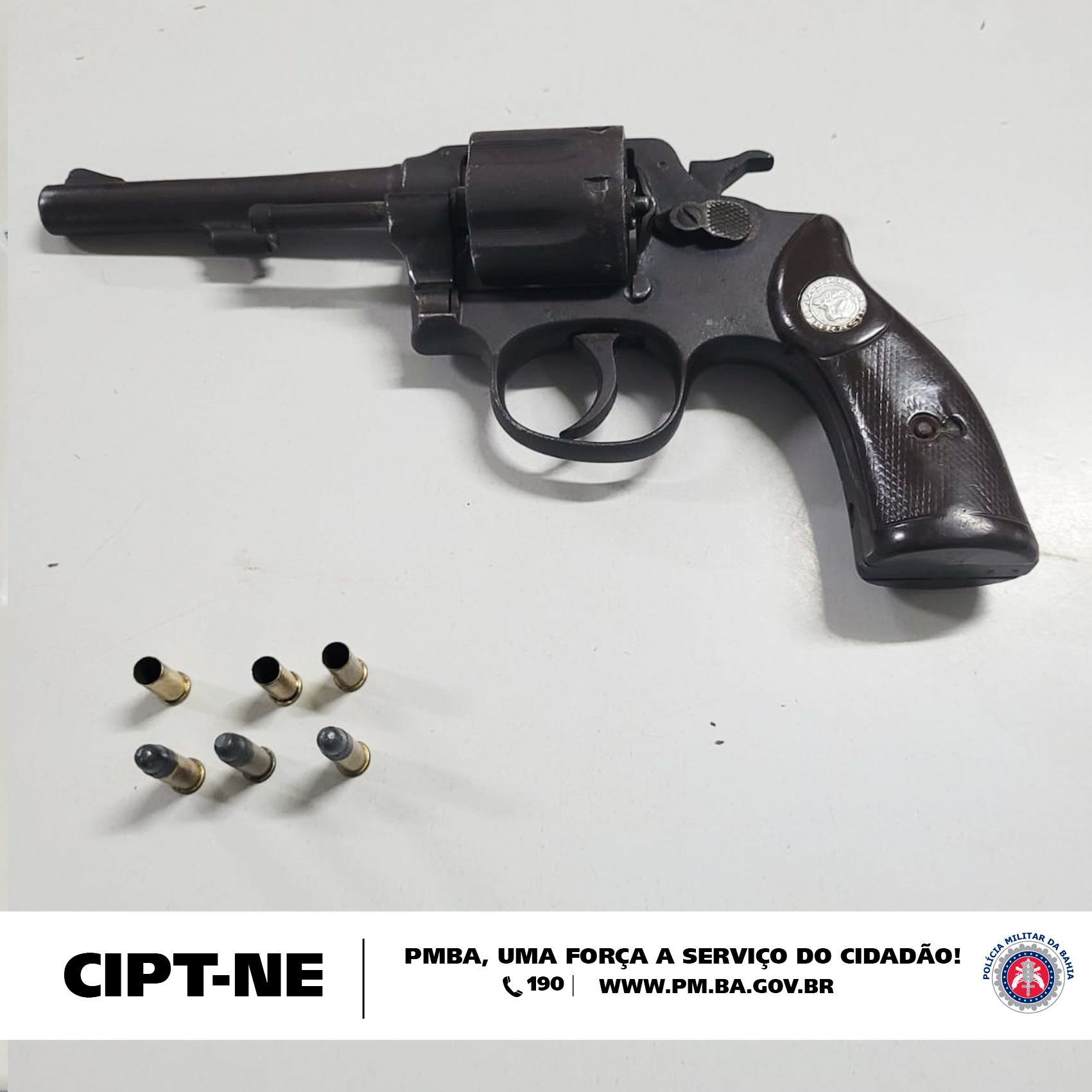 • Um revólver calibre 38; • Seis munições calibre .38.