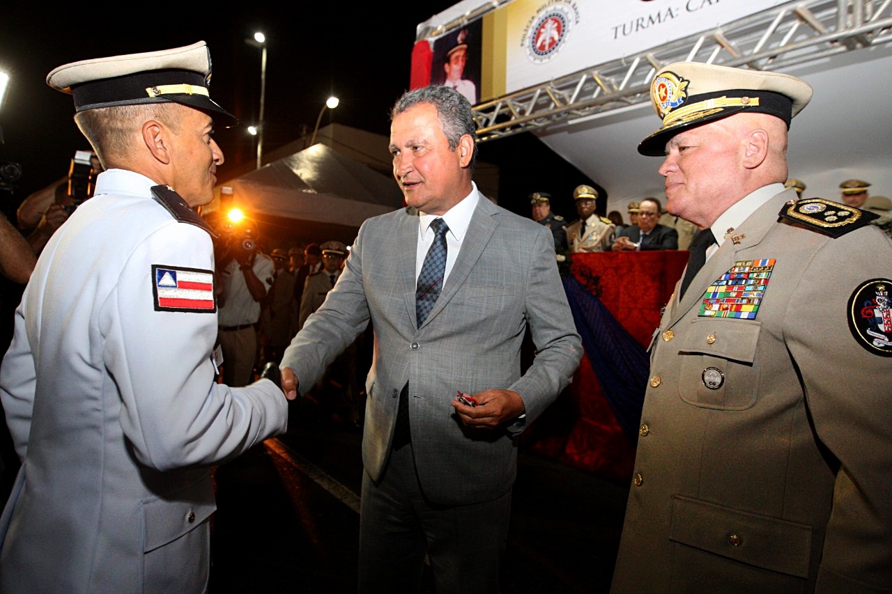 A noite foi de celebração para os 78 aspirantes do curso de formação de oficiais auxiliares da Polícia Militar da Bahia, na Vila Policial Militar do Bonfim, em Salvador. A solenidade foi realizada nesta segunda-feira (5), às 18h, e contou com a presença do governador Rui Costa; do comandante-geral da PMBA, coronel Paulo Coutinho e outras autoridades.
