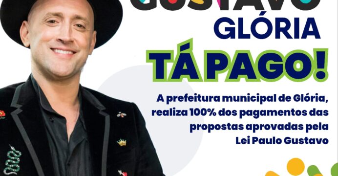 A Prefeitura de Glória, na Bahia, através da Secretaria de Governo, Coordenação de Cultura, realiza nesta quarta-feira (06), o pagamento aos fazedores de cultura do município que inscreveram projetos e foram habilitados a receber o recurso da Lei Paulo Gustavo.
