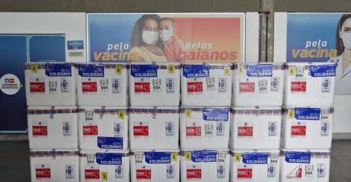 Um novo carregamento com vacinas da AstraZeneca/Fiocruz chegou à Bahia na manhã desta quarta-feira (26). Foram recebidas 351.750 doses do imunizante que, após a conferência da Coordenação de Imunização da Secretaria de Saúde do Estado (Sesab), serão encaminhadas para municípios do interior baiano ainda nesta quarta.
