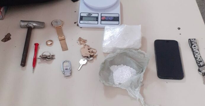 – 532g de substância análoga à cocaína – 01 balança de precisão – 01 celular iPhone – 01 motocicleta