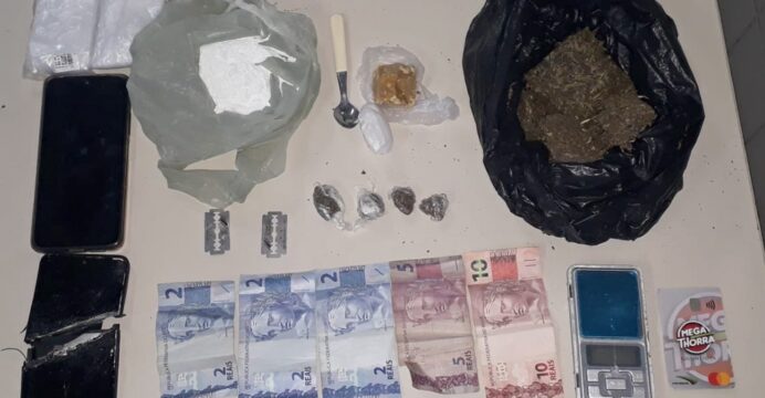 Durante a operação, os policiais se depararam com indivíduos que, ao notarem a presença policial, tentaram se desfazer de uma sacola contendo diversos itens associados ao tráfico. Entre os materiais apreendidos estavam 62,6g de uma substância análoga à cocaína, 37,2g de crack, 166g de maconha, além de equipamentos utilizados para a pesagem e embalagem das drogas.