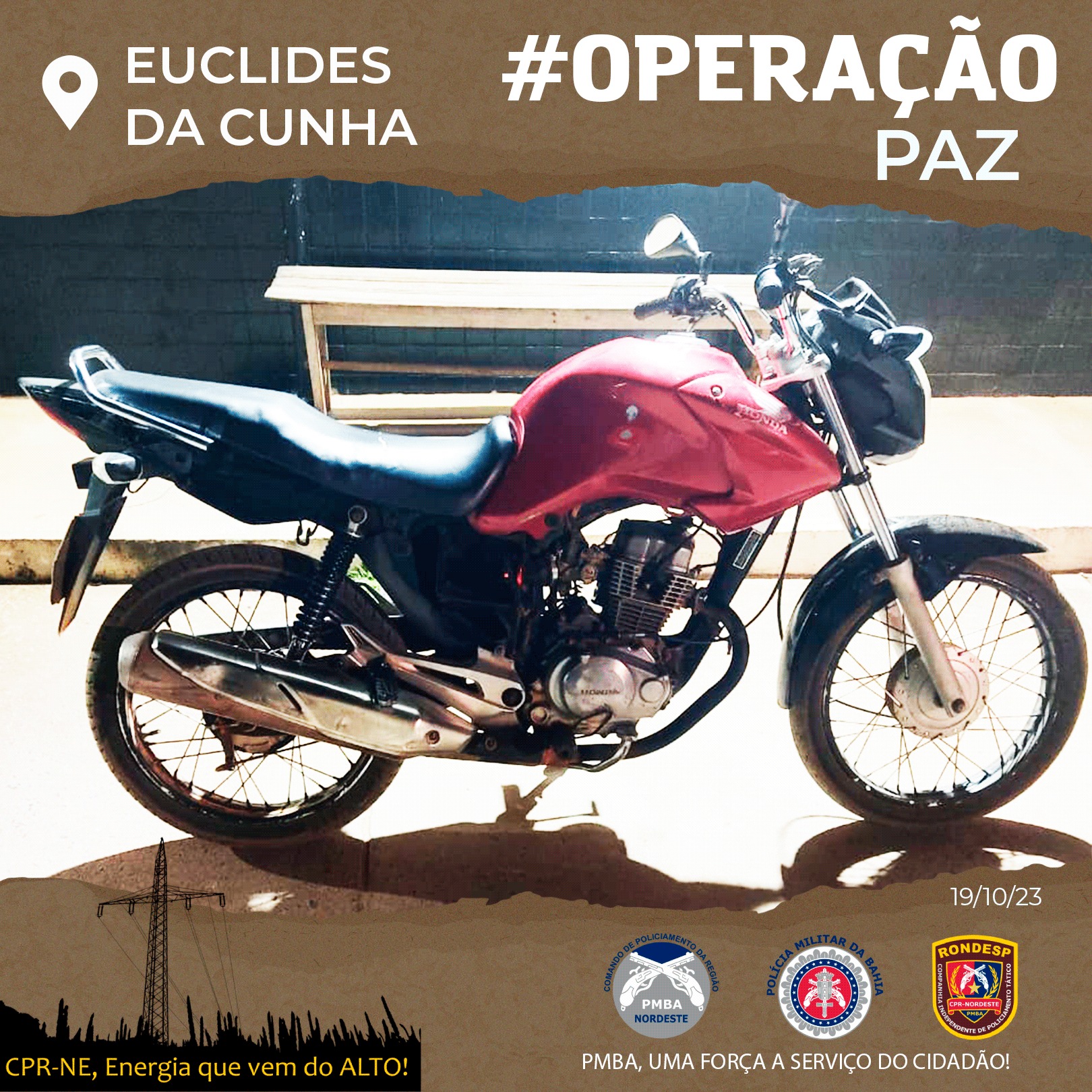 Euclides da Cunha, Bahia — No dia 19 de outubro de 2023, por volta das 20h00, guarnições da RONDESP Nordeste, subordinadas ao CPR-NE e em apoio a área operacional do 5° BPM, executaram uma ação bem-sucedida no município de Euclides da Cunha, Bahia. A operação faz parte da iniciativa estratégica denominada “Operação PAZ”, e tem como foco a promoção da segurança e a manutenção da ordem pública na região.