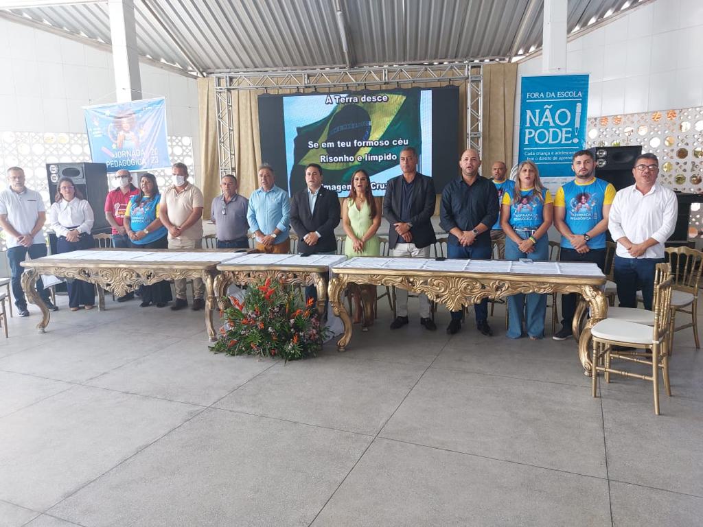 O evento aconteceu no Espaço Veralú e contou com a presença dos professores da Rede Municipal de Ensino; Coordenadores Pedagógicos; Gestores Escolares; Equipe Técnica e Pedagógica da SEDUC; representantes do Poder Legislativo; representantes dos Conselhos Educacionais, representante da APLB- Sindicato; representante do Núcleo Territorial de Educação; Delegado de Polícia, Dr. Marco Bacelar; Secretária de Educação, Deusângela Campos Nunes Bacelar; Secretário de Assistência Social, Tássio Castor; Secretária; Vice- Prefeito, José Nilson Sá Oliveira; e o Prefeito David Cavalcanti, que ao proferir suas palavras falou dos investimentos na Educação e enfatizou a importância de garantir a aprendizagem aos educandos.