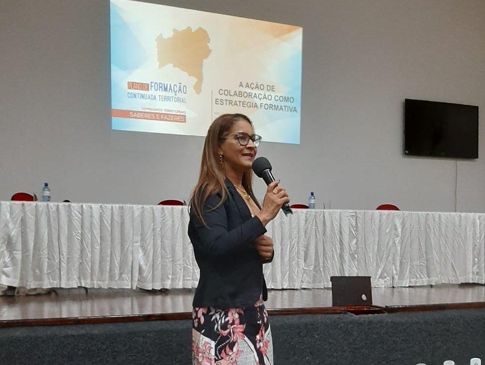 No Seminário, Deusângela Campos apresentou o que está sendo realizado na Formação Continuada no Município de Glória. “Participei terça-feira,22, do Seminário Territorial, finalizando a Formação Continuada 2022, na oportunidade tive o imenso prazer em representar e apresentar um pouco do que realizamos em nosso Município, momento muito gratificante e emocionante. Agradeço imensamente ao Prefeito David Cavalcanti pelo valoroso apoio à Educação do Município, a @celiaramosramos68, linda mensagem, recebida, a @clarissaleide, aos diretores: Cicera, Genicllaudio, Andreilson, Denise, aos coordenadores, Diretor do NTE Marcos Pires, as formadoras do Programa, Sandra Marcula e Rejane”. Enfatiza a secretária.
