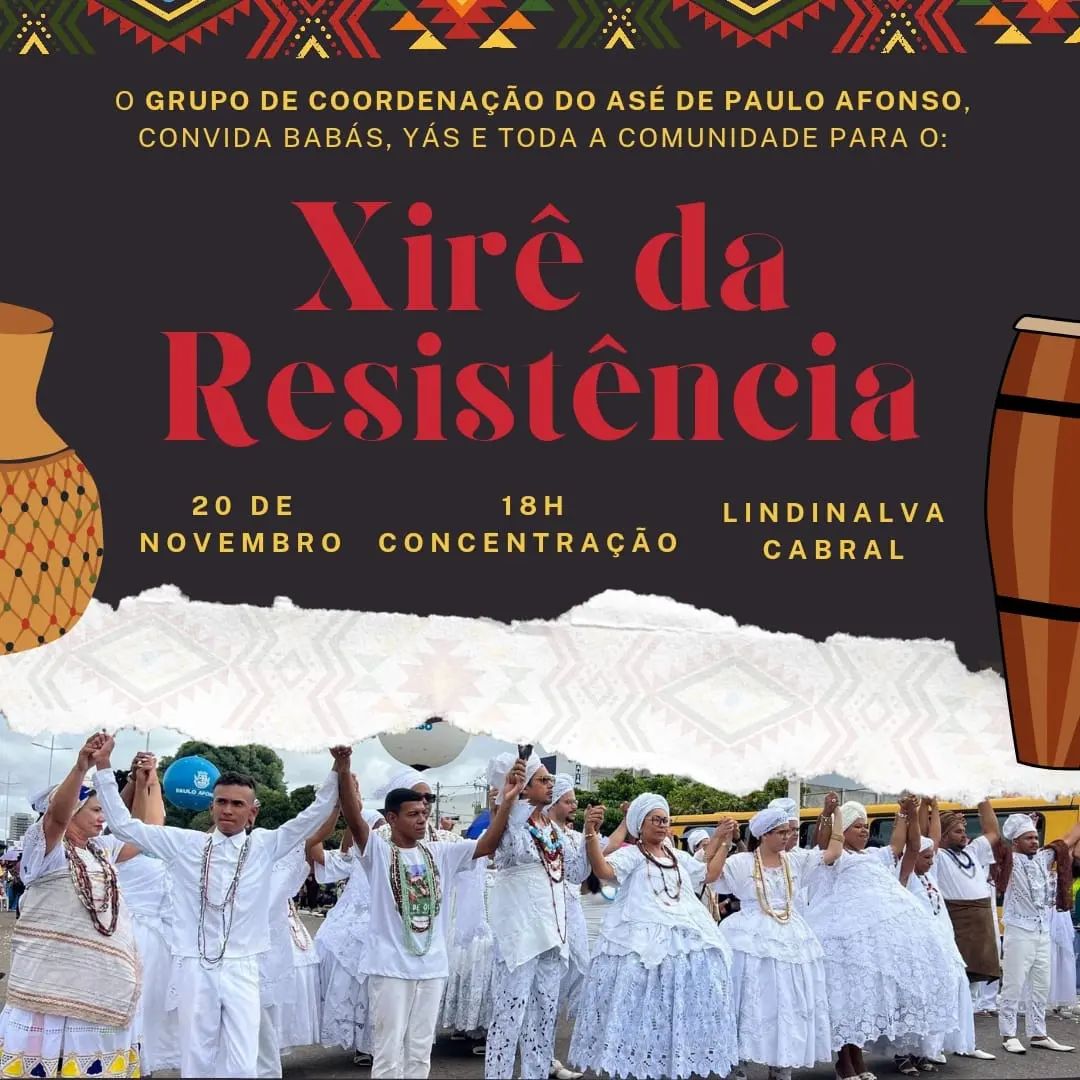 O dia 20 de novembro de 2023 “Dia da Consciência Negra” ficará marcado na história da cidade de Paulo Afonso Bahia, com a realização do Xiré da Resistência, onde foi cultuado a paz através de suas tradições religiosas.