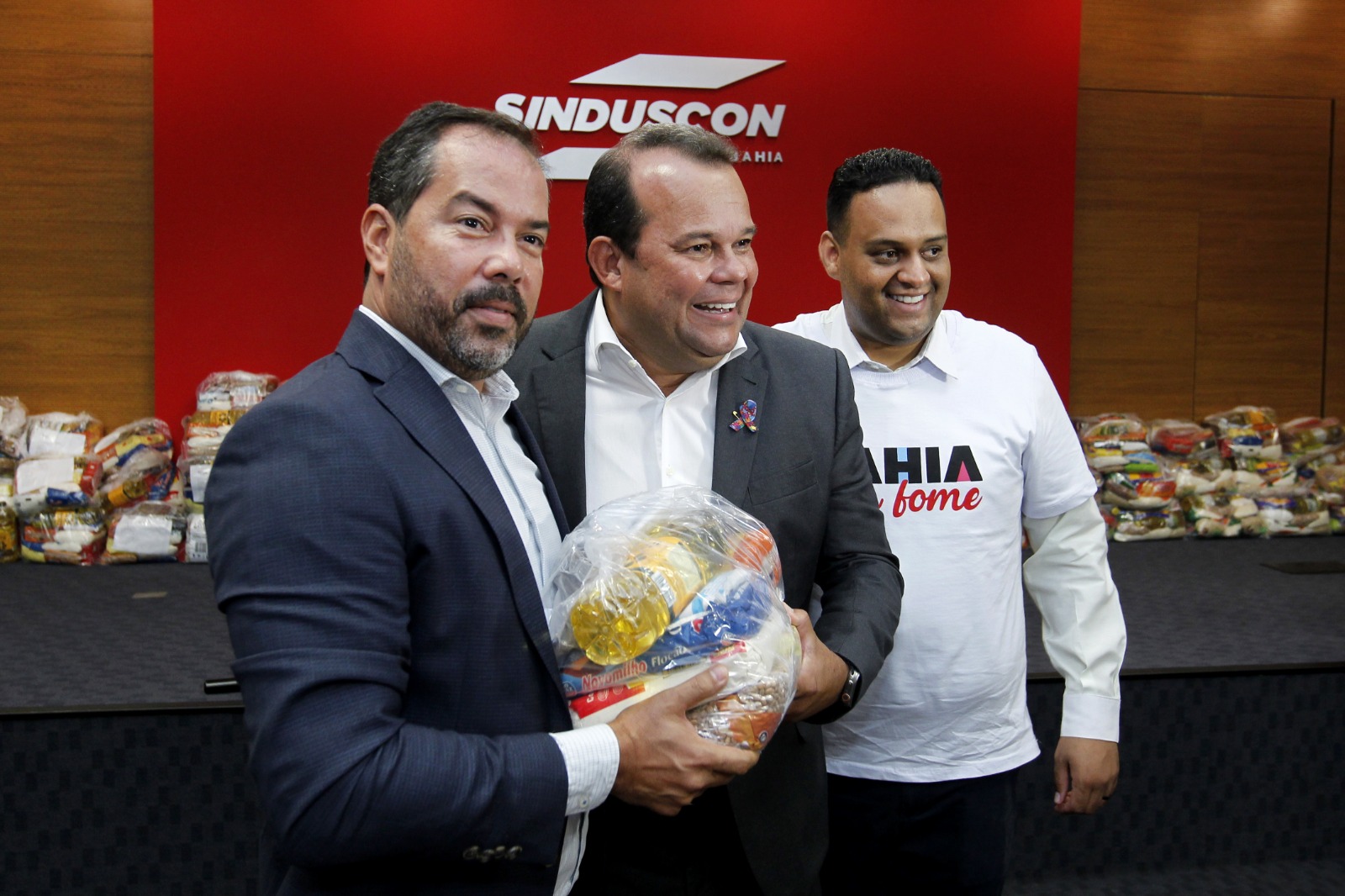 O Programa Bahia Sem Fome recebeu mais uma doação de 1.500 cestas básicas, dessa vez do Sindicato da Indústria da Construção do Estado da Bahia (Sinduscon-BA). A entrega foi feita pelo presidente da instituição, Alexandre Landim, ao governador em exercício Geraldo Júnior, nesta segunda-feira (3), em Salvador. Com 1.500 postos de arrecadação em todo o estado, até o momento, o Governo da Bahia já recebeu 160 toneladas de alimentos. Até o momento, as instituições parceiras já distribuíram 80 toneladas de gêneros alimentícios para as mesas de quem mais precisa.