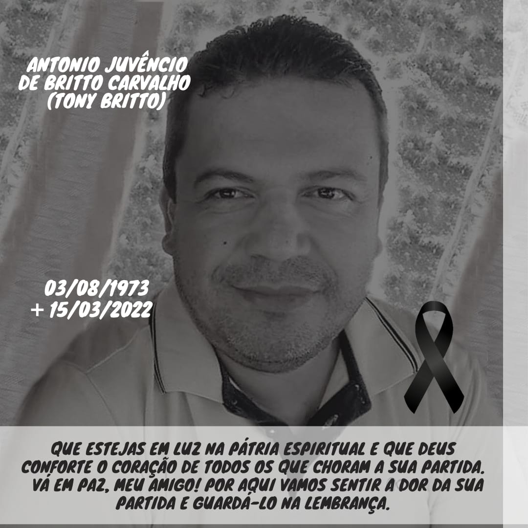 O falecimento do Músico, Radialista, Antônio Juvêncio Carvalho de Britto, 48 anos , na cidade de Canindé de São Francisco em Sergipe pegou todos de surpresa. Filho da professora aposentada da cidade de Pedro Alexandre Bahia, DONA SINHÁ. Tony Britto como era conhecido faleceu de morte natural ocasionada por AVC em seguida parada cardíaca não resistiu, em 15 de março de 2022.