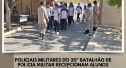 POLICIAIS MILITARES DO 20º BATALHÃO DE POLÍCIA MILITAR RECEPCIONAM ALUNOS DO 8º ANO DO COLÉGIO MONTEIRO LOBATO PARA VISITA À UNIDADE QUE COMPLETARÁ SEU 28º ANIVERSÁRIO.