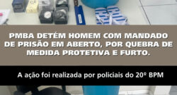 PMBA DETÉM HOMEM COM MANDADO DE PRISÃO EM ABERTO, POR QUEBRA DE MEDIDA PROTETIVA E FURTO.