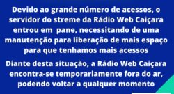 Paulo Afonso-BA: Devido ao grande número de acessos, o servidor do Streaming da Rádio Web Caiçara entrou em pane