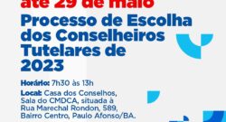 O Conselho Municipal dos Direitos da Criança e Adolescente de Paulo Afonso (CMDCA) prorrogou o prazo de inscrição, até o dia 29 de maio, para os interessados em participar do processo de escolha dos conselheiros tutelares...