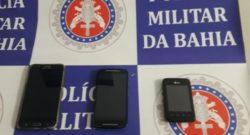 Três celulares foram arremessados para área interna do Presídio Regional de Paulo Afonso Bahia. Os Policiais Militares que estavam atentos perceberam a movimentação e apreenderam na Ala “C” 03 celulares: Samsung J7, Moto G 3 e...