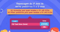 Glória-BA: Vacinação Infantil da Covid-19 Coronavac e Pfizer dia 27 de maio