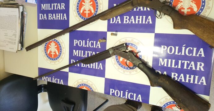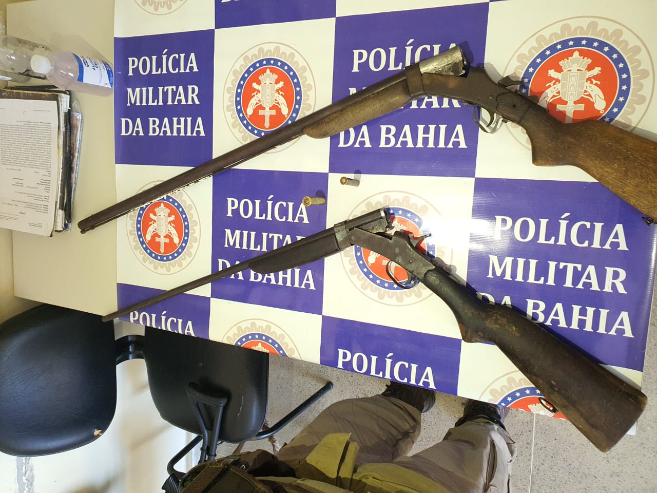MATERIAL APREENDIDO: 01 (uma) Espingarda de Cartucho calibre.36, coronha de madeira, oxidada com numeração suprimida, com um cartucho intacto do mesmo calibre. 01 (uma) Espingarda coronha de madeira, oxidada calibre .28, sem marca, com um cartucho intacto do mesmo calibre.