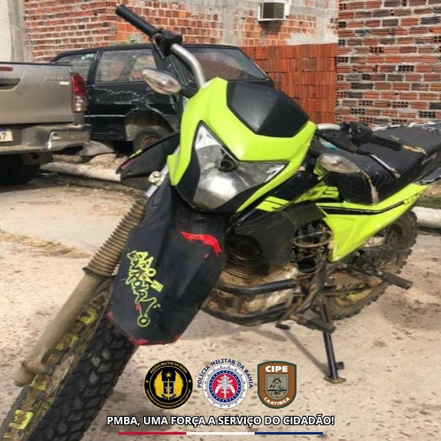 A Polícia Militar da Bahia, através da Companhia Independente de Policiamento Especializado (CIPE-Caatinga), recuperou nesta quarta-feira (19), motocicleta com todos os sinais identificadores suprimidos, na cidade de Chorrochó – BA.