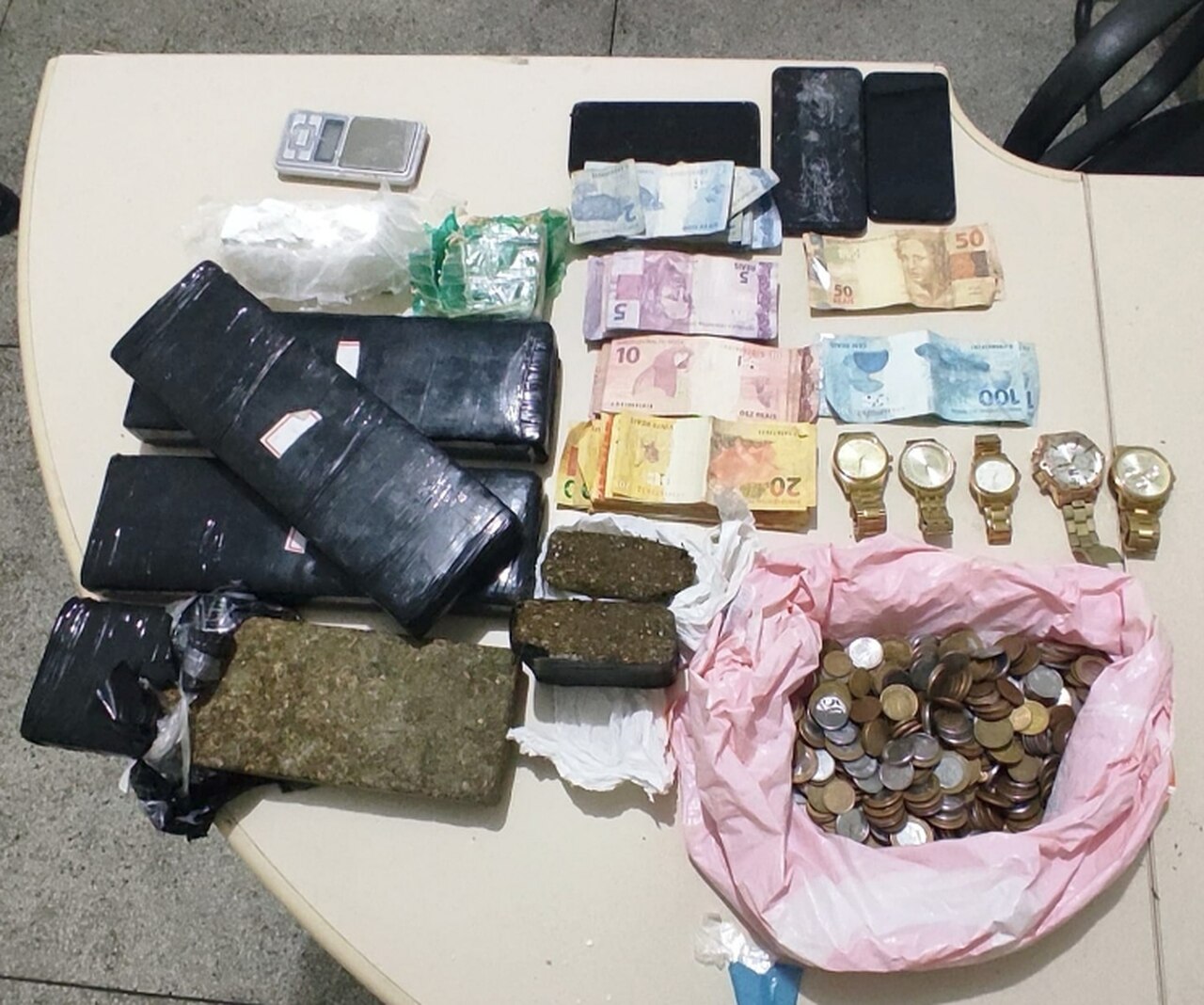 Durante a operação, um veículo suspeito foi abordado, e dentro dele foi encontrada uma porção de maconha. O indivíduo no veículo admitiu ser o dono da droga. Em seguida, a polícia encontrou quantidades significativas de maconha, crack e cocaína.