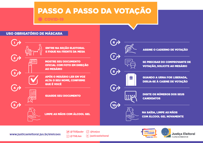 – Para evitar aglomerações, o horário de votação foi ampliado: será das 7h às 17h;