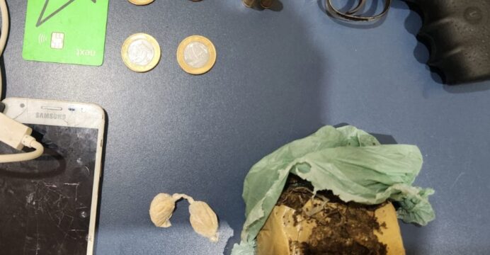 Por volta das 12:50h de hoje (25), após informações que na Rua Alba Cassandra, centro, havia alguns elementos traficando drogas e portando arma de fogo, as guarnições foram deslocadas, em rondas ao logradouro supradito, sob o Comando de dois oficiais e com a guarnição do Delegado daquela cidade e com a aproximação das guarnições ao local, dois indivíduos foram avistados comercializando drogas e, ao verem a aproximação da polícia, os citados tentaram empreender fuga, não conseguindo lograr êxito, um suspeito foi preso, pois na busca pessoal foram encontrados com o mesmo: 01 Revólver cal.32, com 02 munições intactas; um tablete pequeno de uma substância análoga a maconha; 02 pedras de uma substância análoga a crack; quatro reais em moedas; 01 Celular Samsung de cor dourada; 01 Carregador e 01 Lanterna. Após ser questionado sobre as drogas o conduzido informou que estava traficando naquele local. Diante dos fatos, tanto o conduzido quanto o material foram apresentados na Delegacia da Cidade de Nova Gloria.