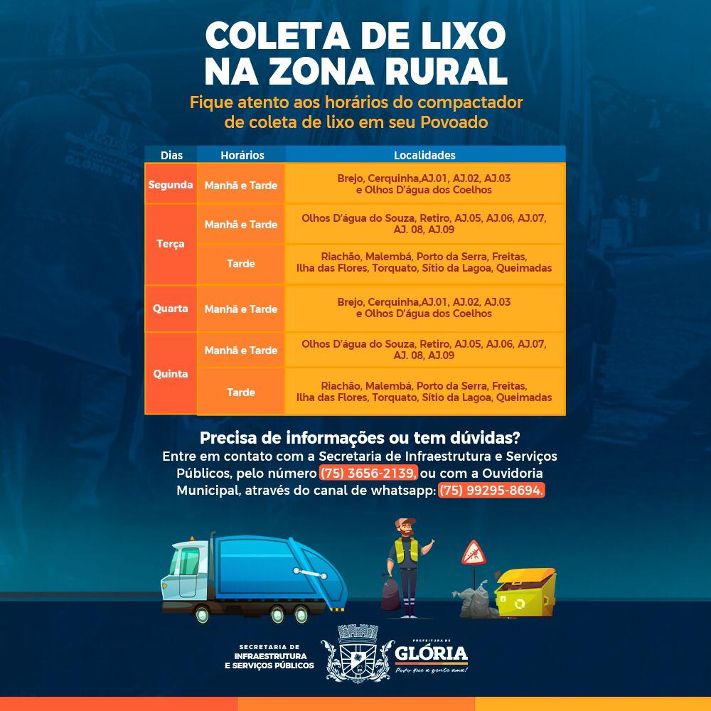 Glória:-BA: Acompanhe o Calendário da Coleta de Lixo na Zona Rural