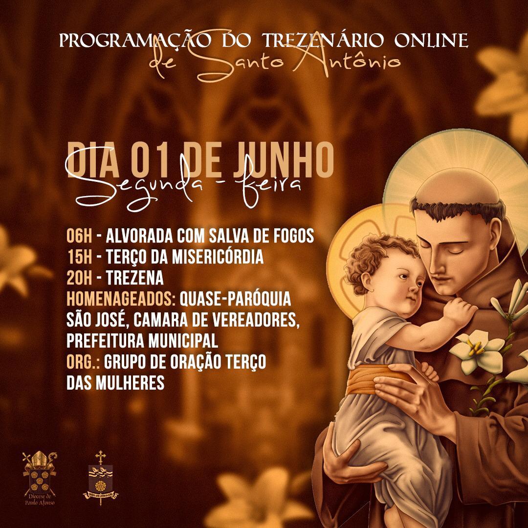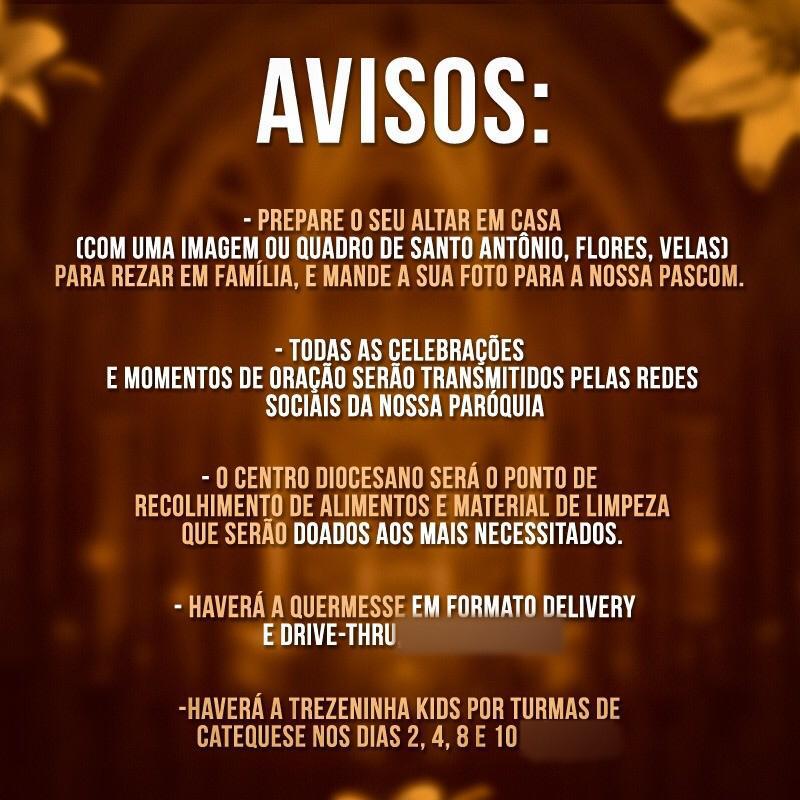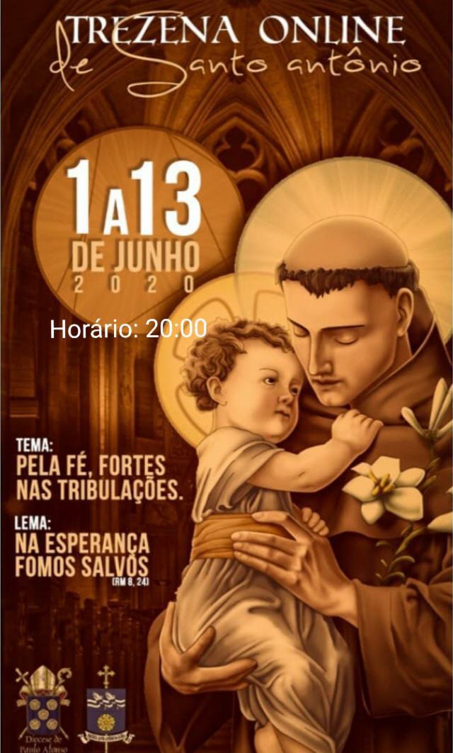 A programação será transmitida pelas redes sociais da Paróquia Santo Antônio e você pode acompanhar tudo.
