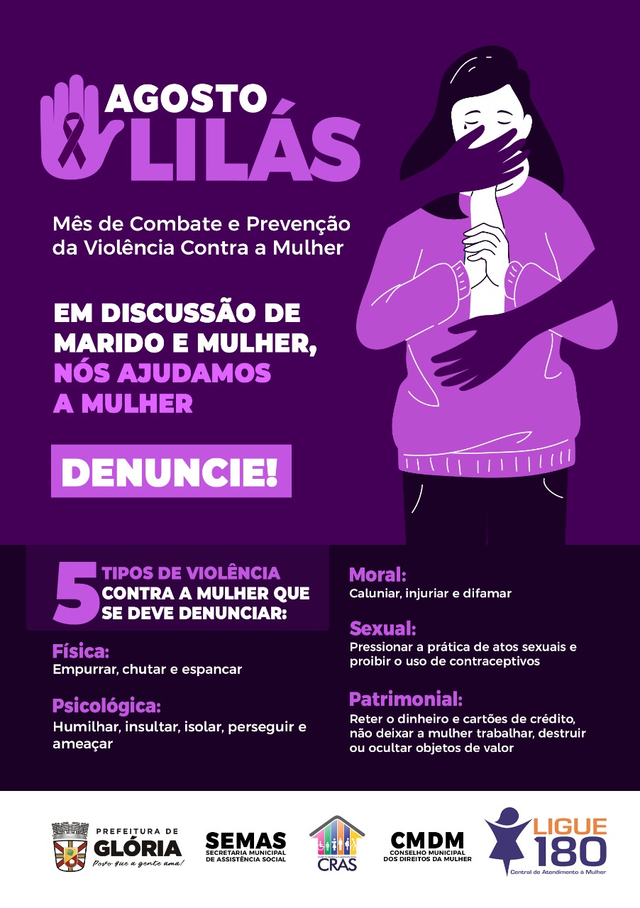 A Prefeitura Municipal de Glória, através da Secretaria de Assistência Social, inicia a campanha do agosto lilás, que tem como objetivo o fortalecimento e a ampla divulgação da Lei Maria da Penha, com a promoção de ações de conscientização pelo fim da violência contra a mulher.