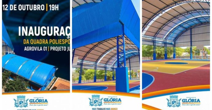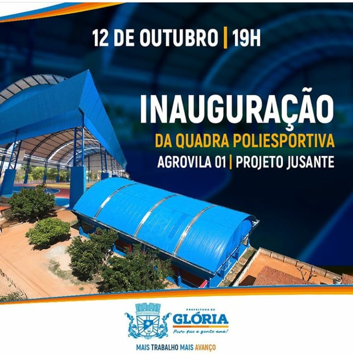 A Prefeitura Municipal de Glória Bahia, através da Secretaria de Governo e da Secretaria de Infraestrutura e Serviços Públicos, vai inaugurar a Quadra Poliesportiva da Agrovila 01 do Projeto Jusante, no dia 12 de outubro, a partir de 19h.