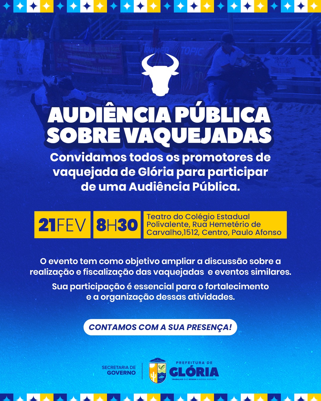 Essa audiência pública é um espaço importante para discutirmos juntos os caminhos para fortalecer e organizar as vaquejadas. A sua presença é essencial para garantir que nossa tradição continue viva e valorizada